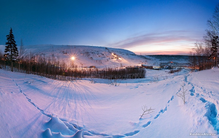 "Городской склон" в Кировске ночью